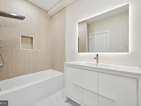 A newly constructed 3-story home with an approved tiered 10 yr tax abatement. This 3-bedroom, 3-bathroom residence combines modern design with smart home features.