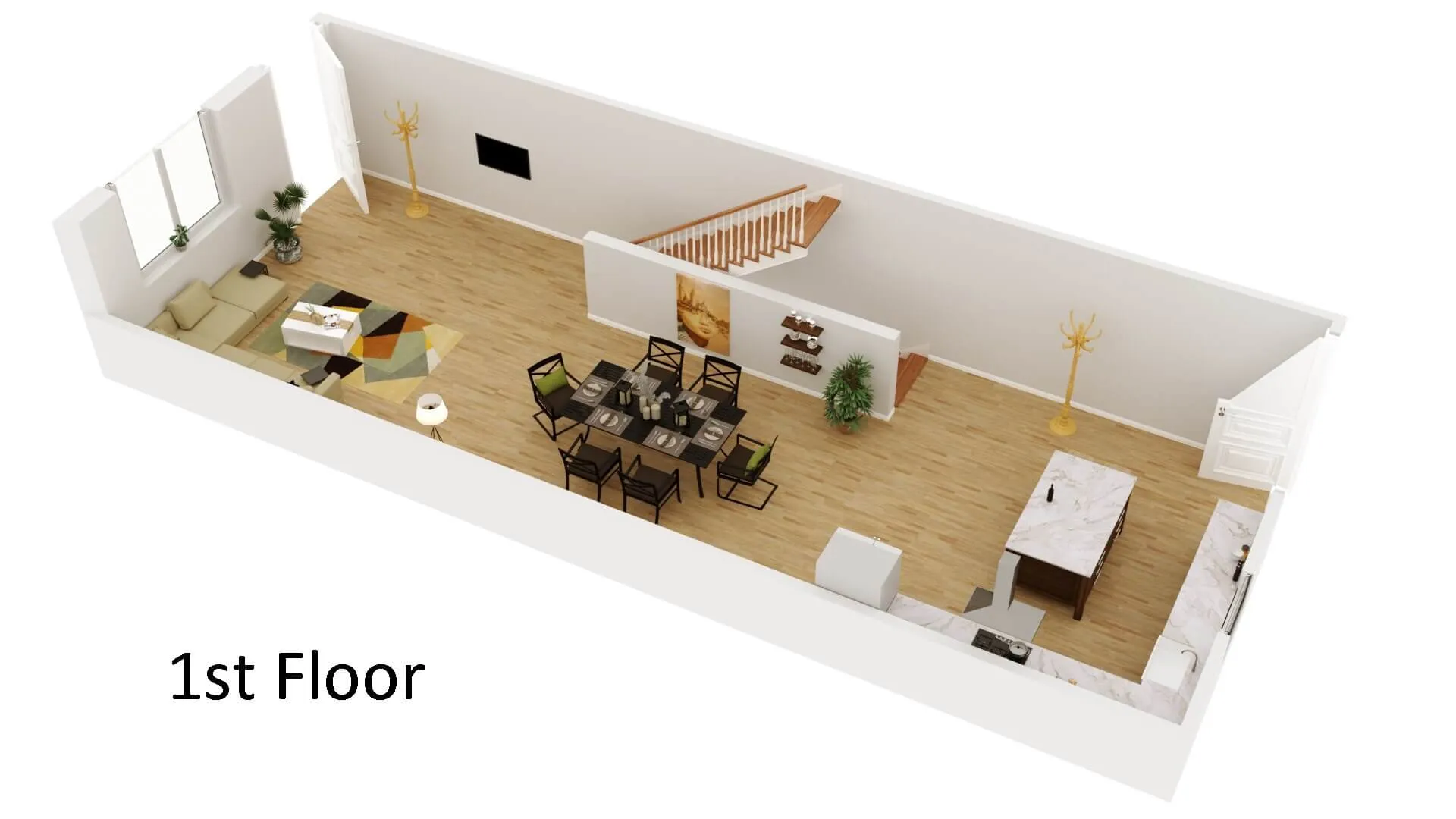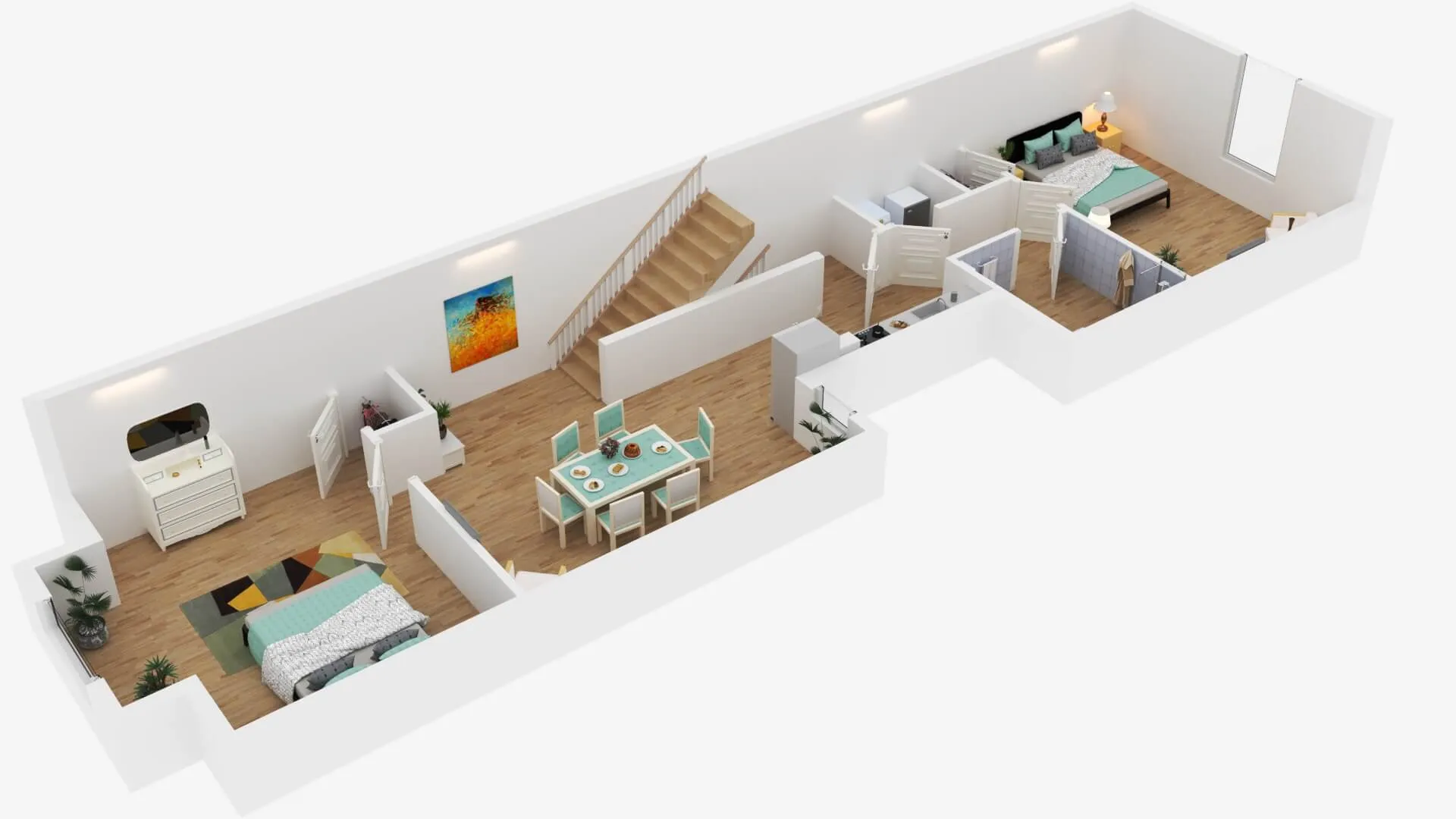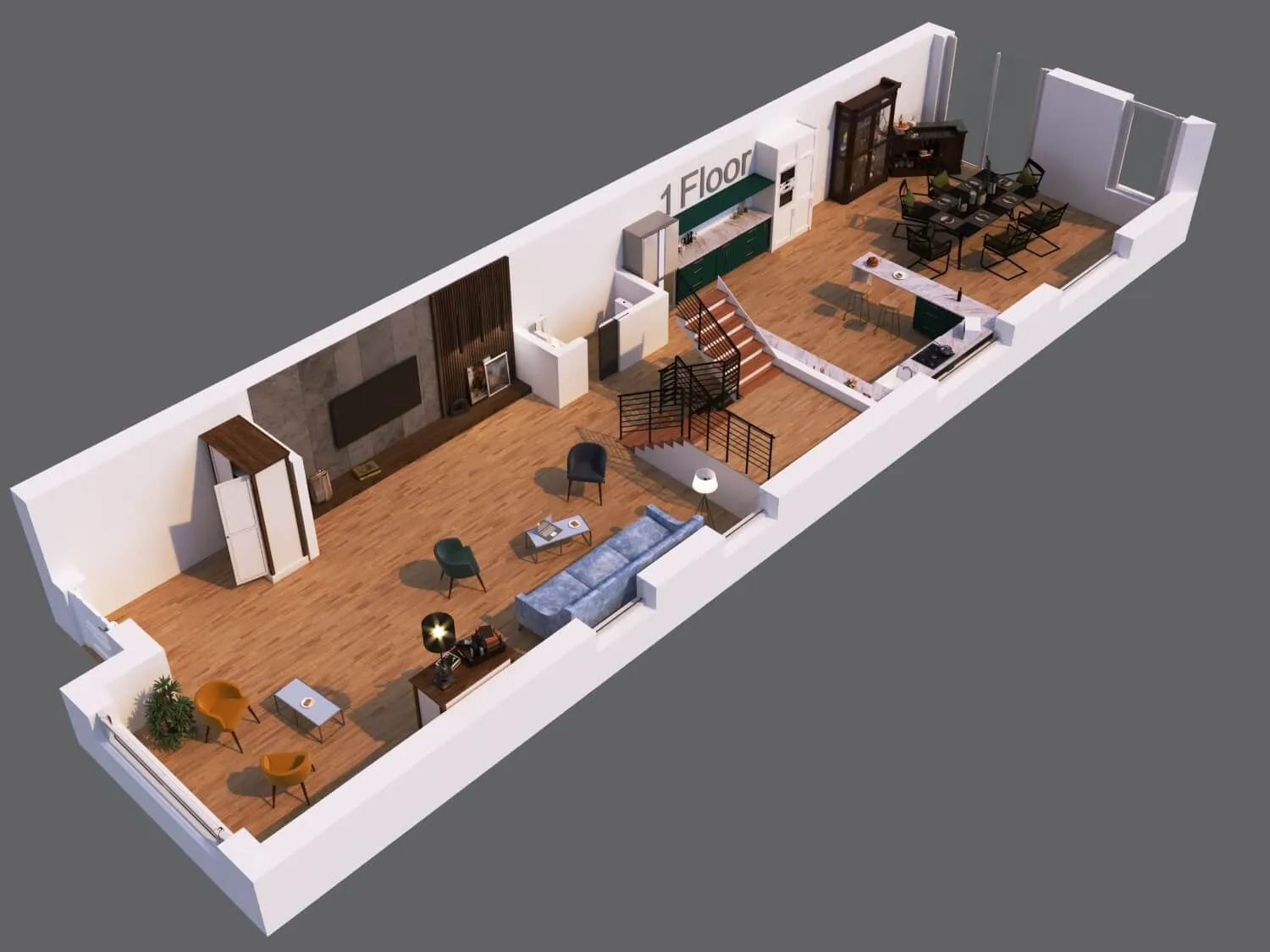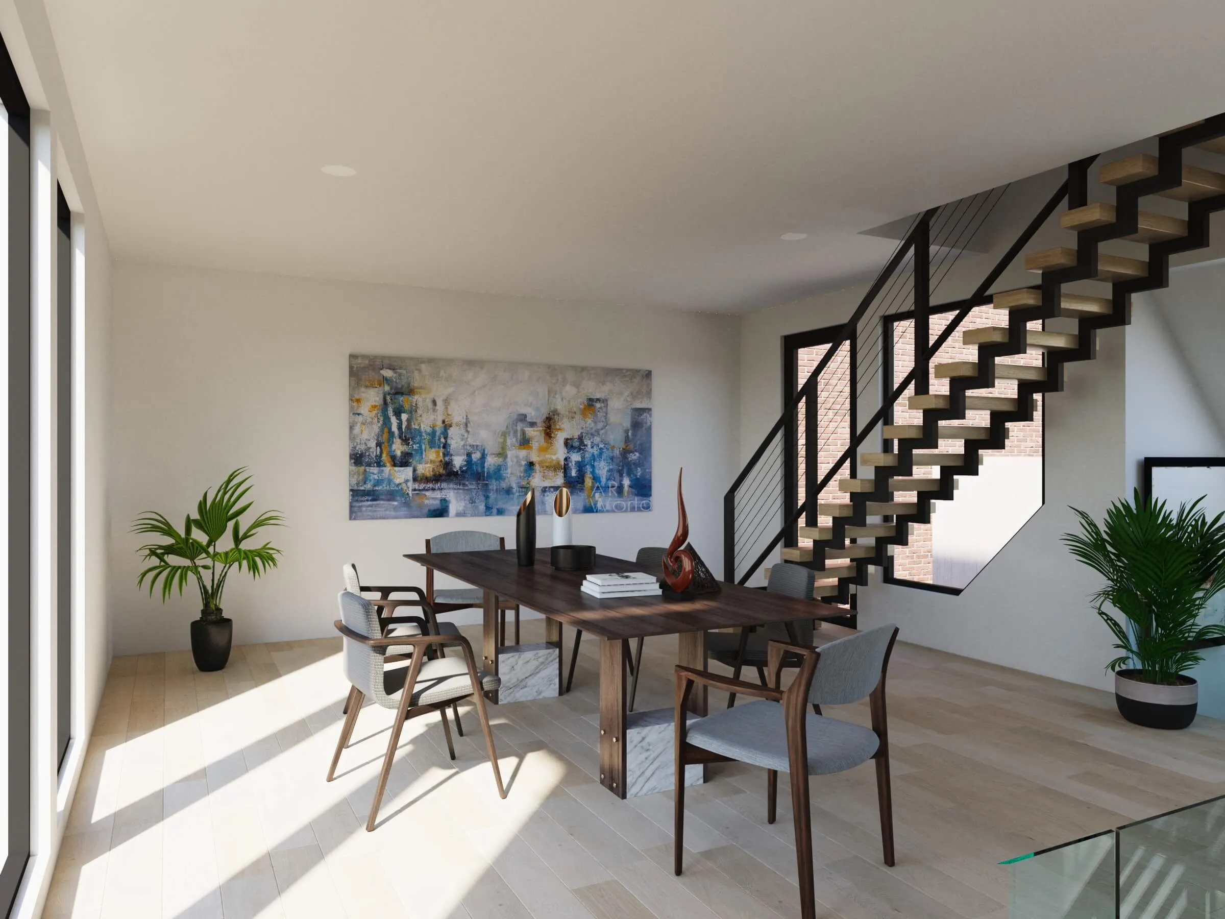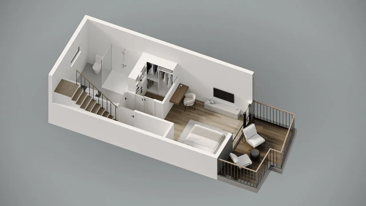 Modern townhouse concept with airy living zones and minimalistic aesthetics. Functional planning ensures comfort, privacy, and seamless flow between spaces.