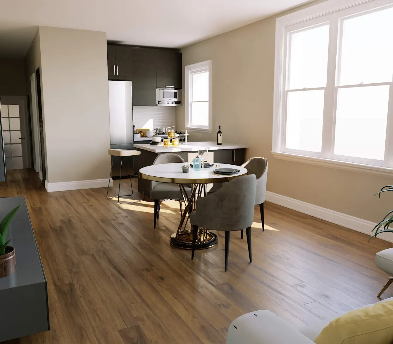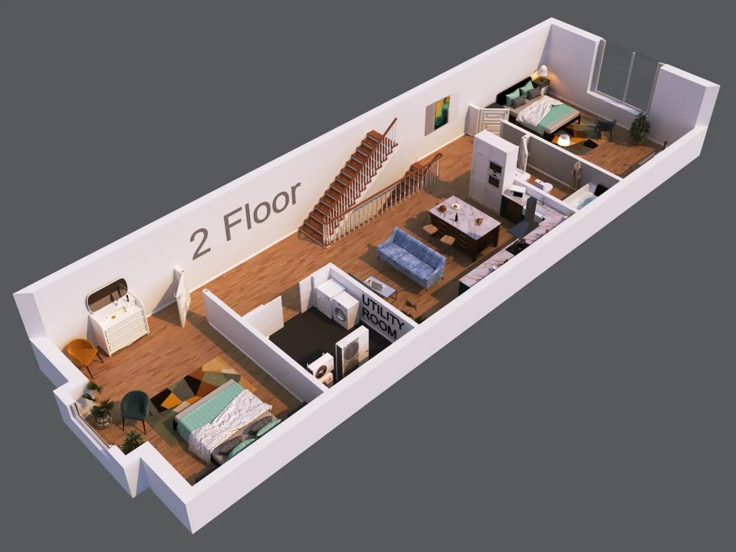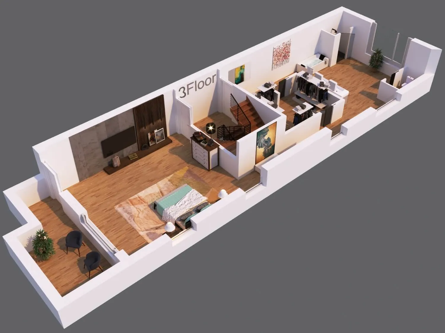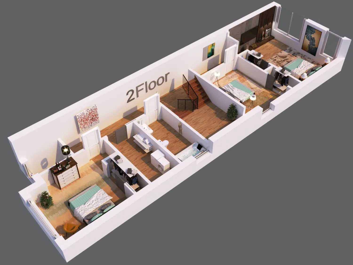 Modern townhouse concept with airy living zones and minimalistic aesthetics. Functional planning ensures comfort, privacy, and seamless flow between spaces.