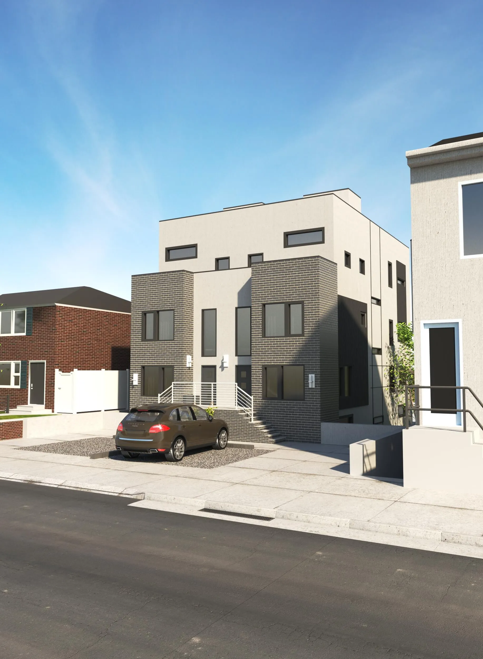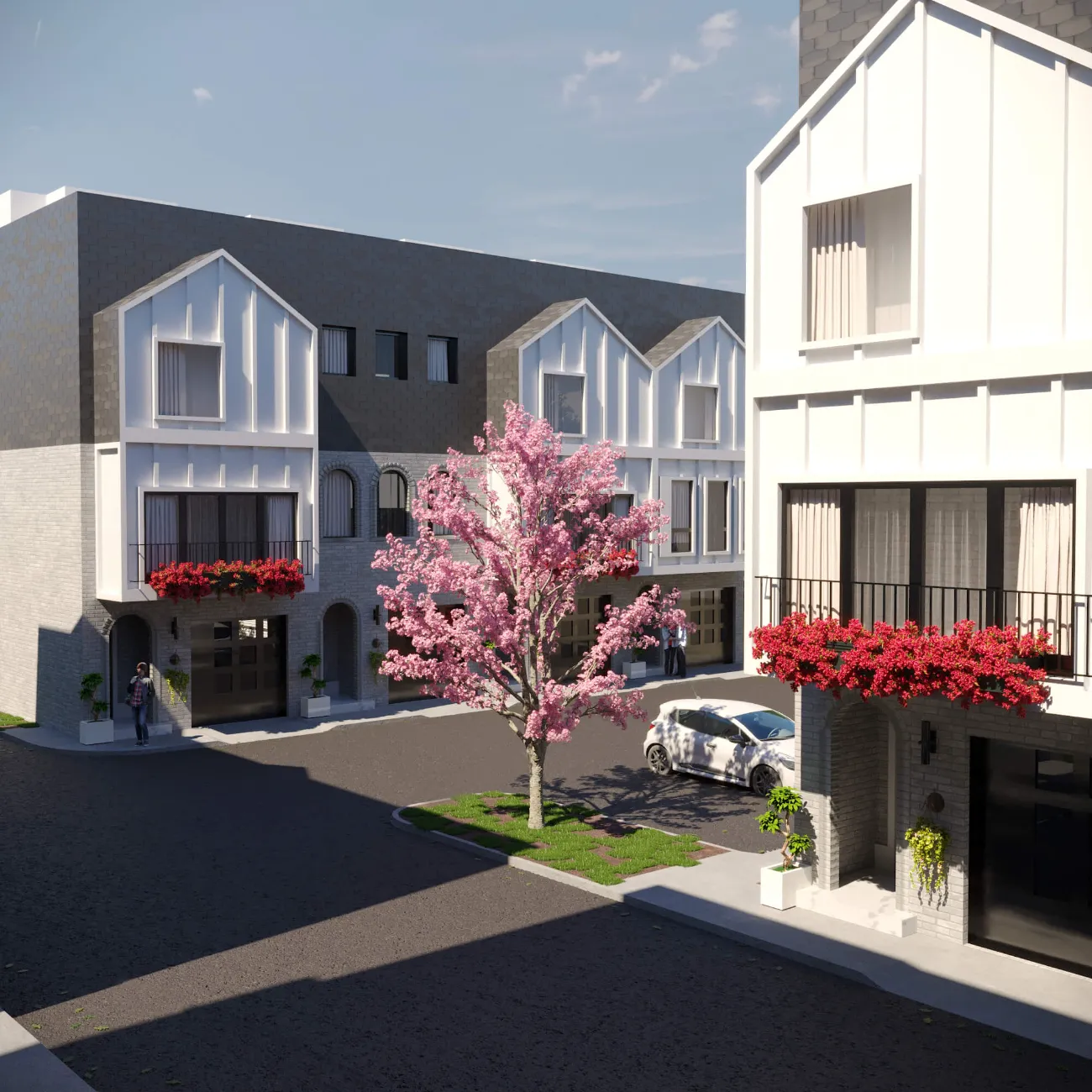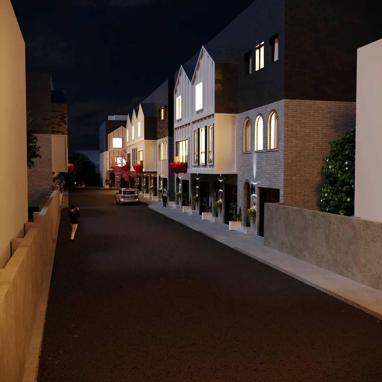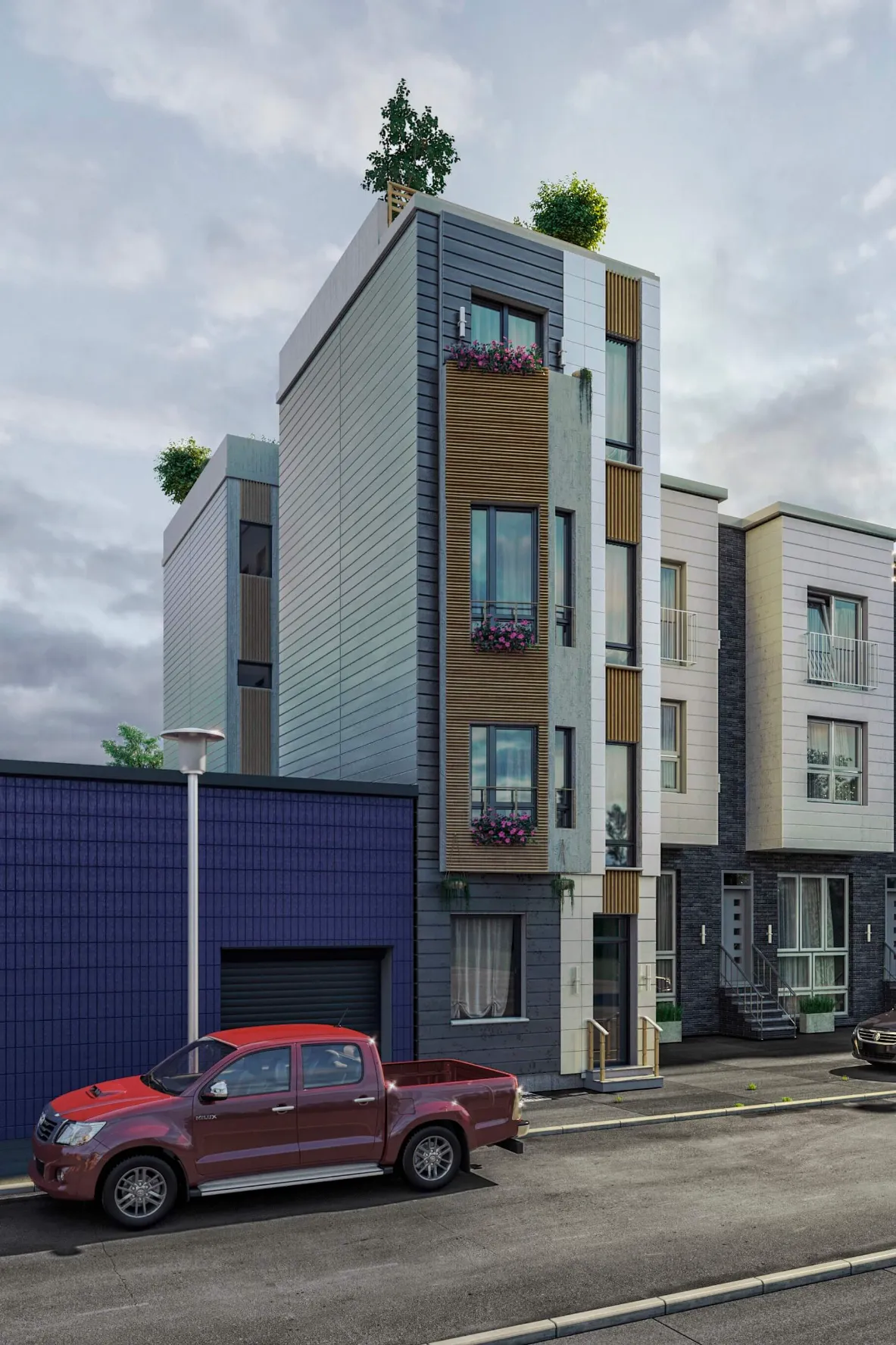Modern multi-story residence combining urban minimalism and private comfort. Distinct facades, rooftop terraces, and functional layouts create a balanced lifestyle.