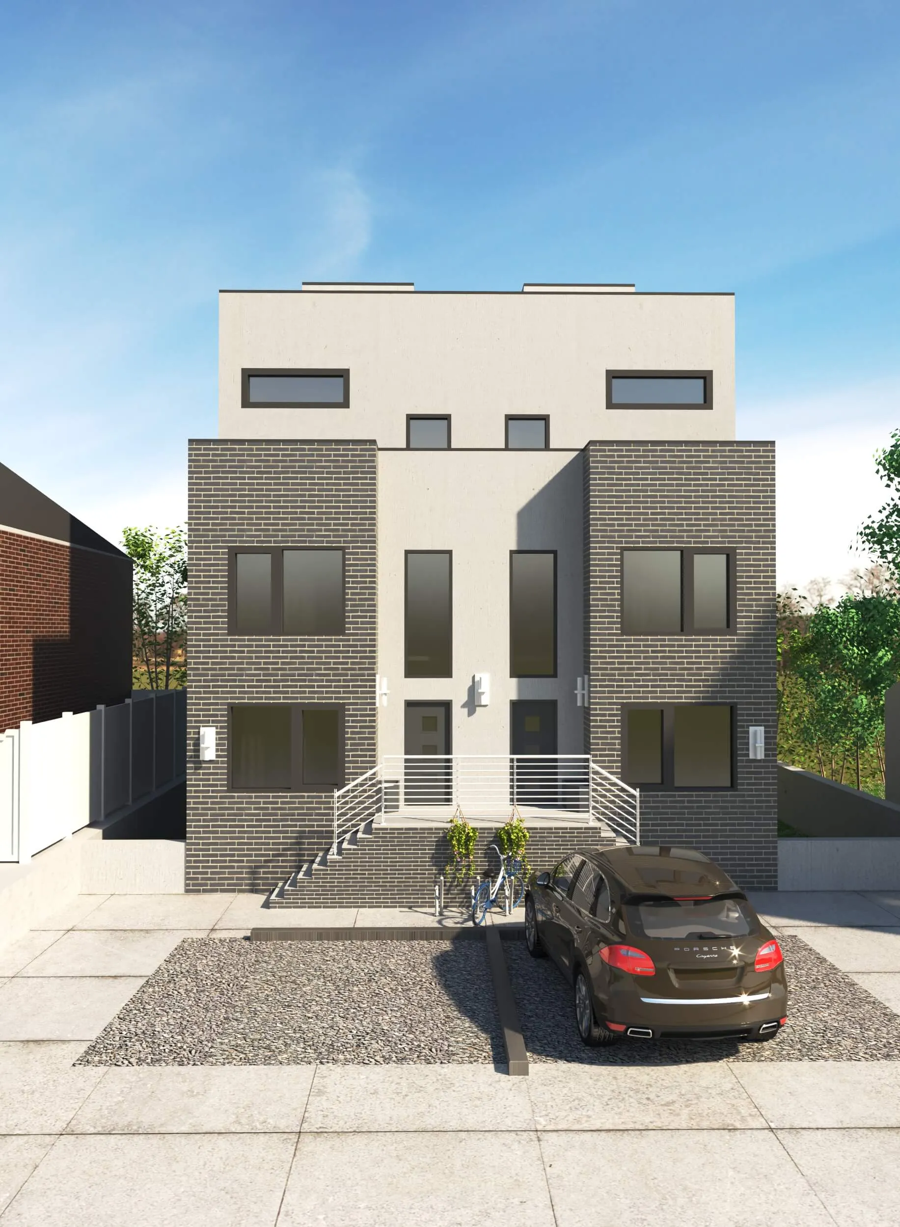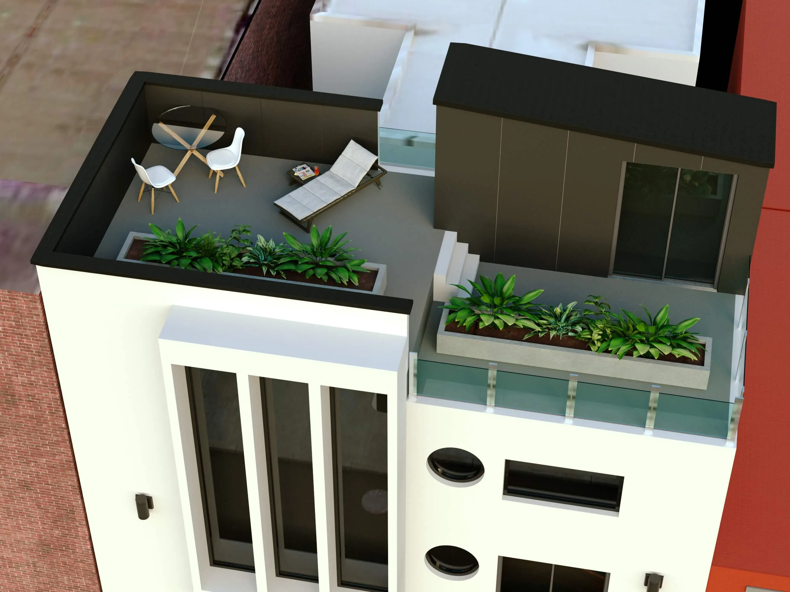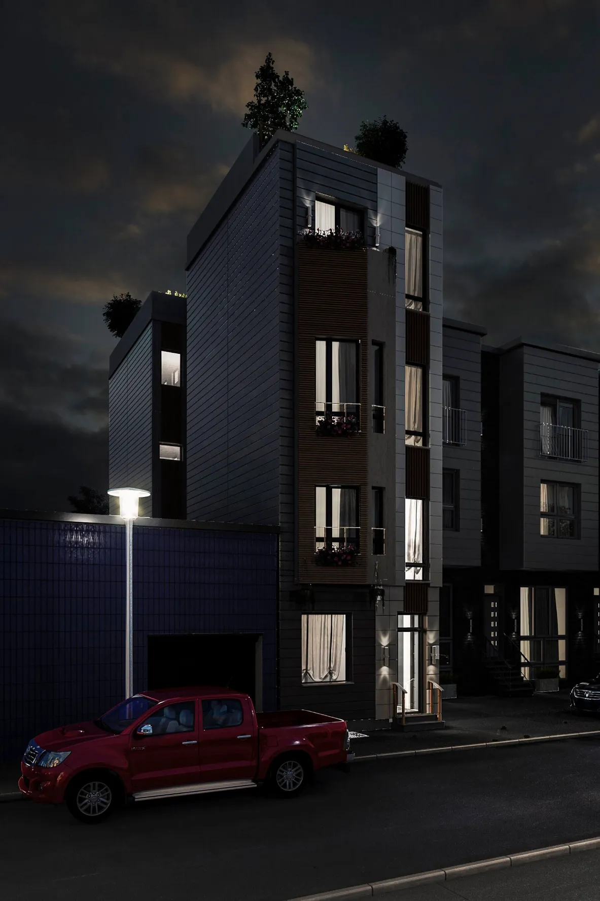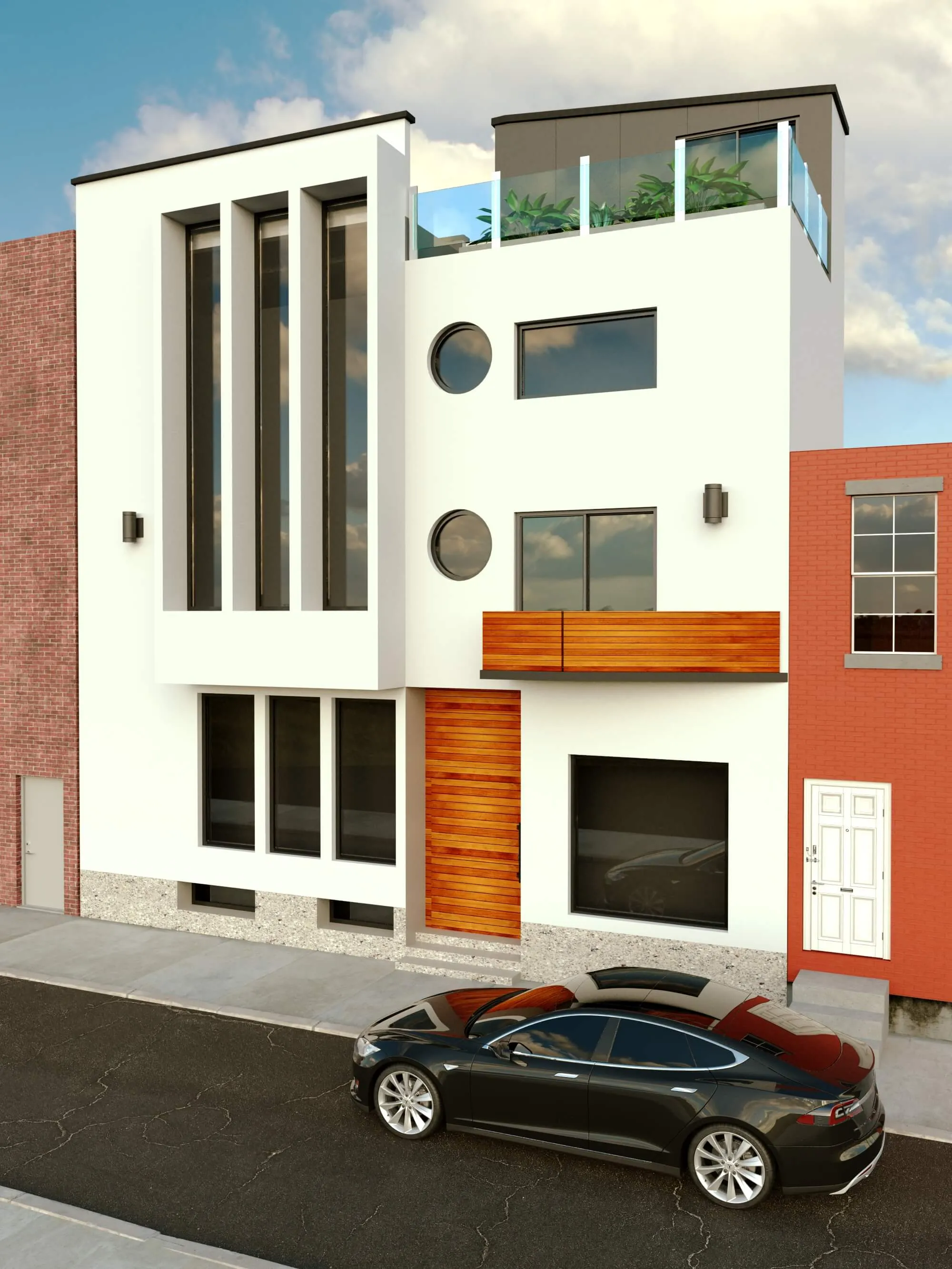 Modern multi-story residence combining urban minimalism and private comfort. Distinct facades, rooftop terraces, and functional layouts create a balanced lifestyle.