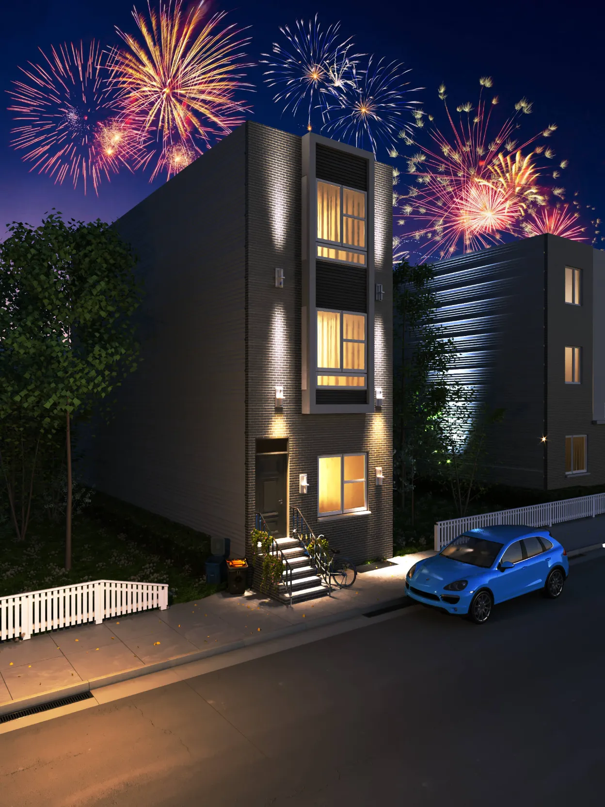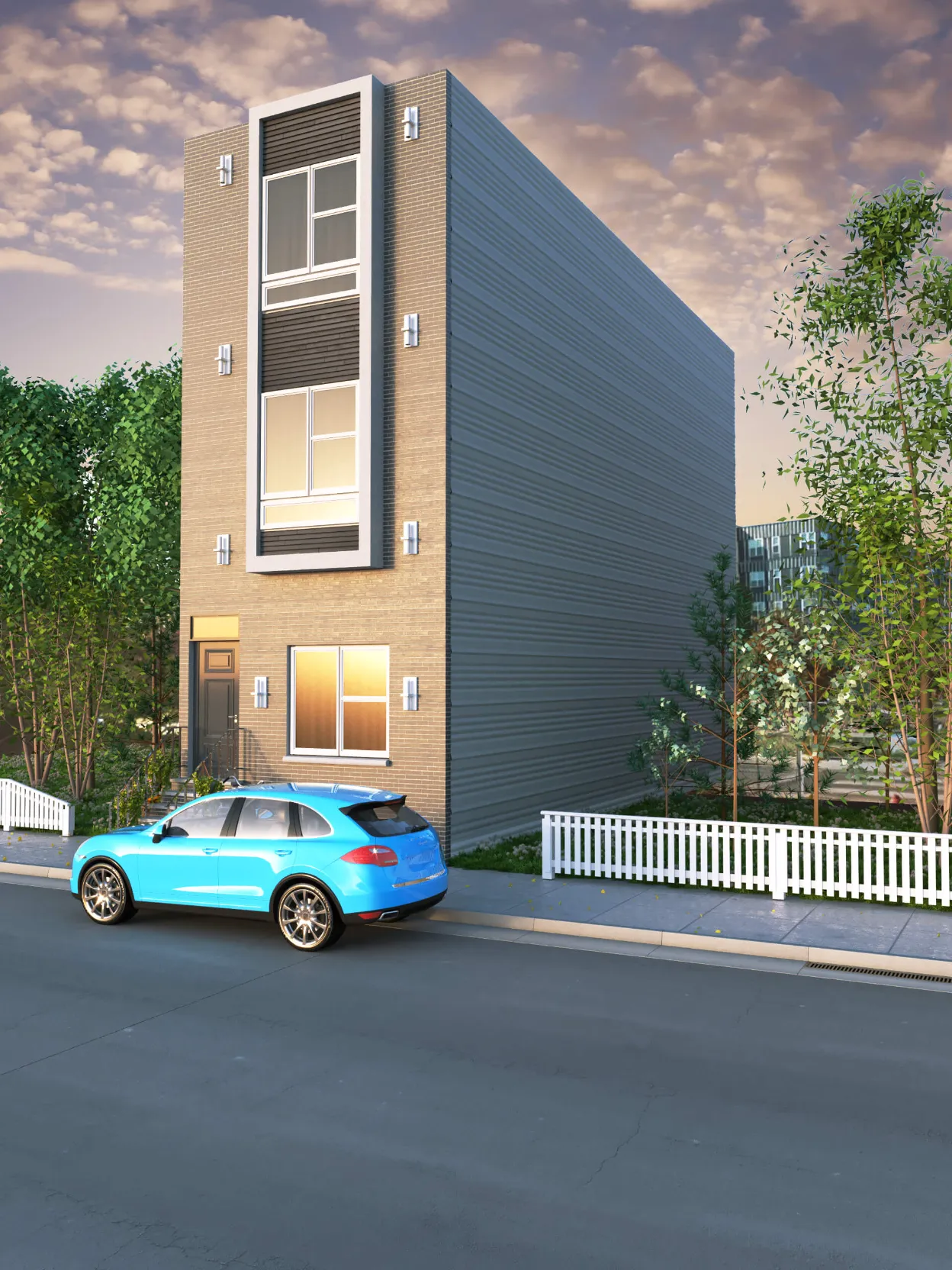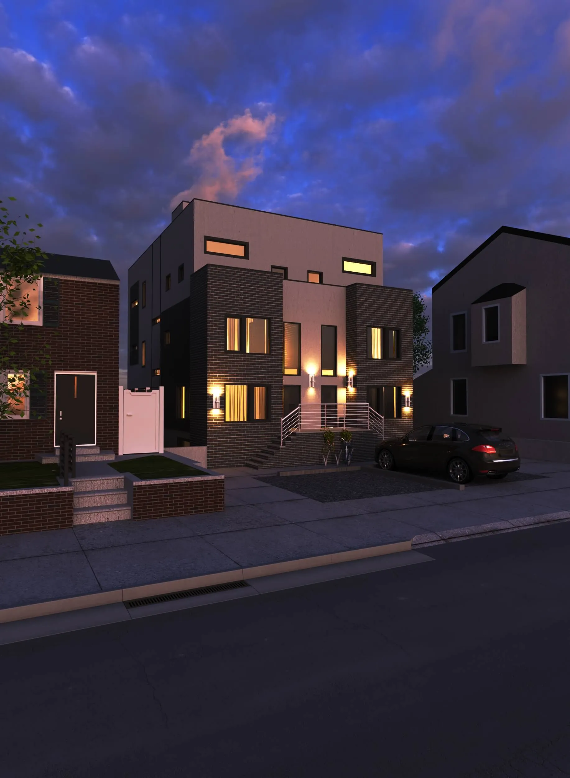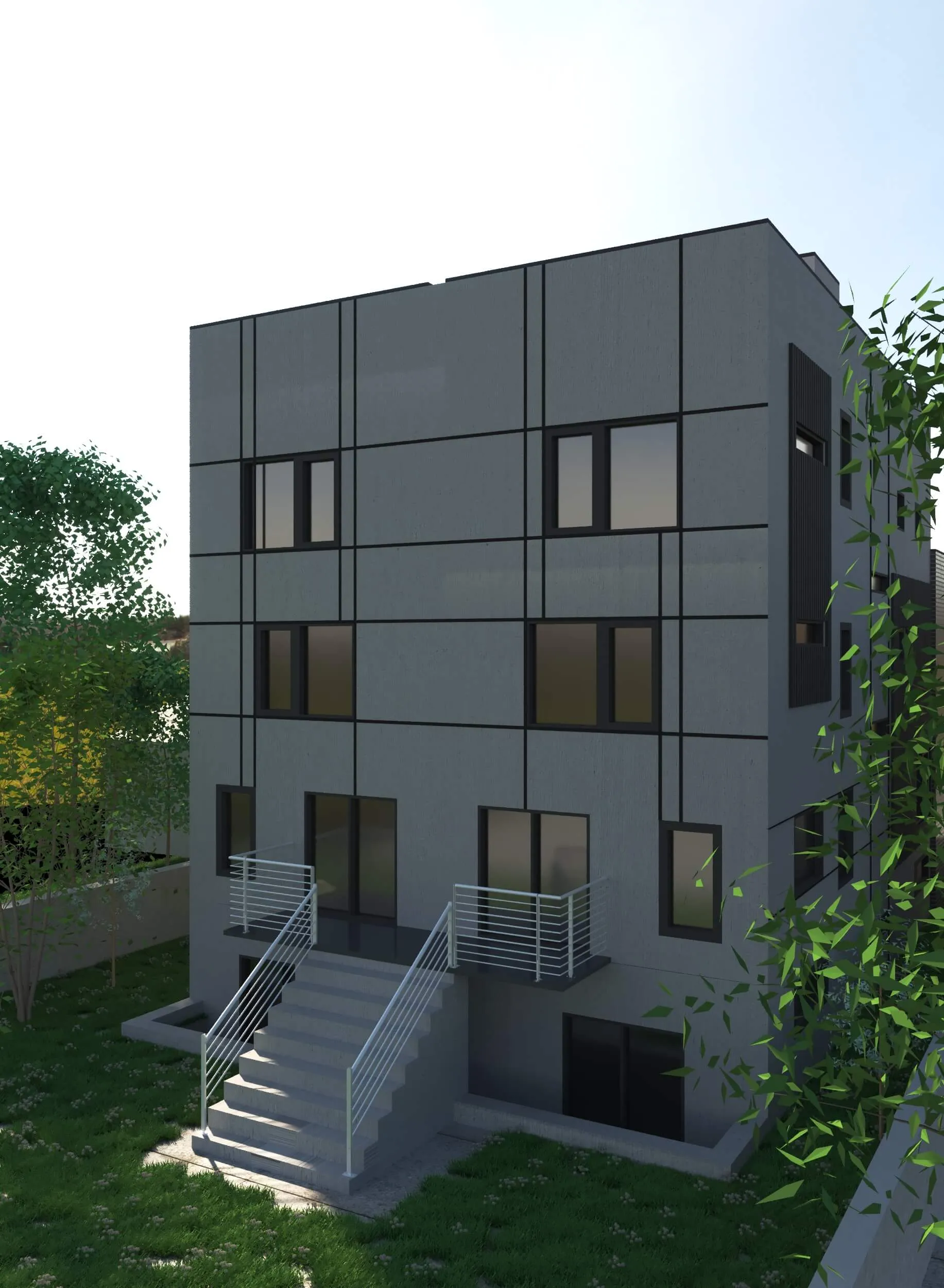 Modern multi-story residence combining urban minimalism and private comfort. Distinct facades, rooftop terraces, and functional layouts create a balanced lifestyle.