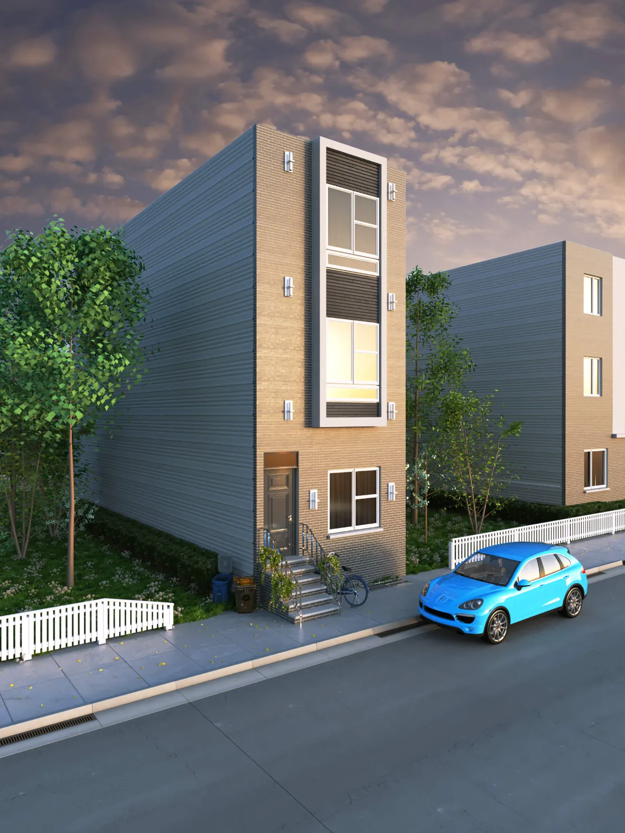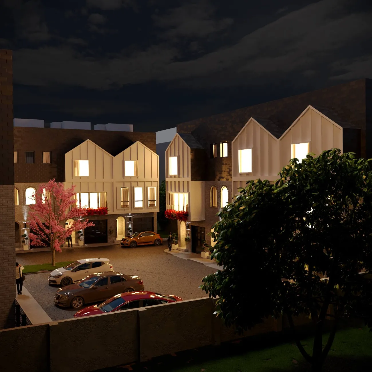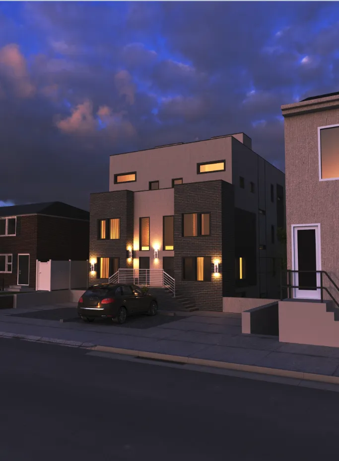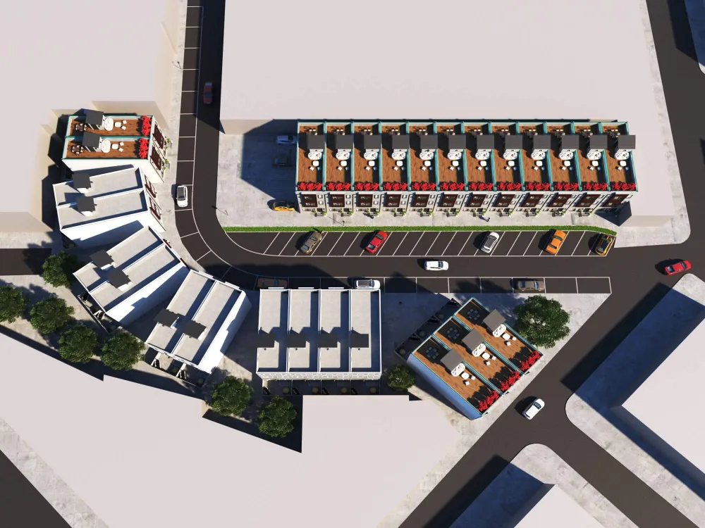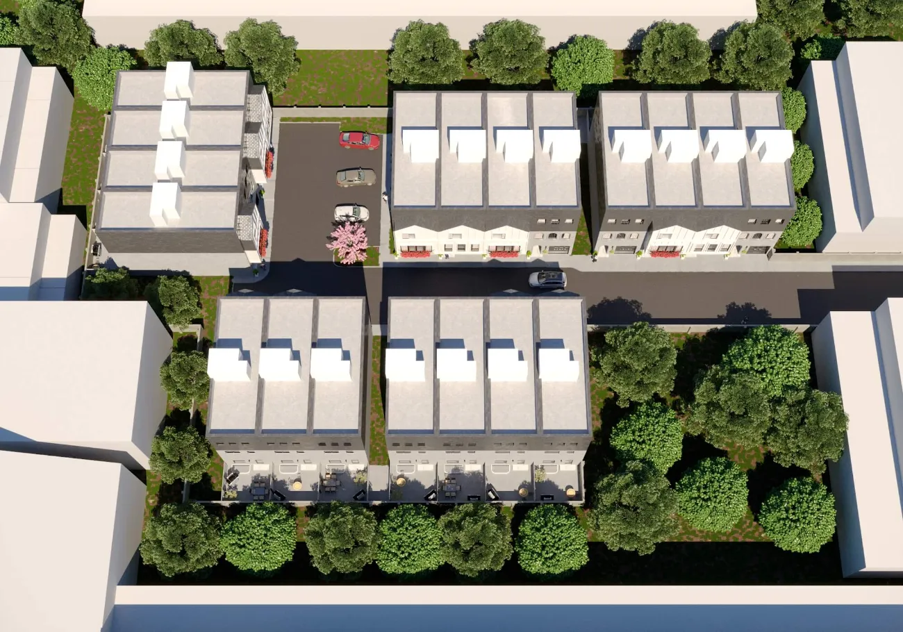 Modern townhouse development combining urban density with cozy private living. Functional multi-level layouts, clean architecture, and warm interiors highlight comfort and efficiency.