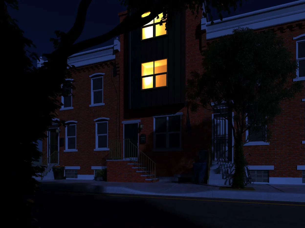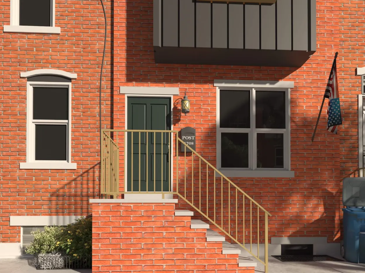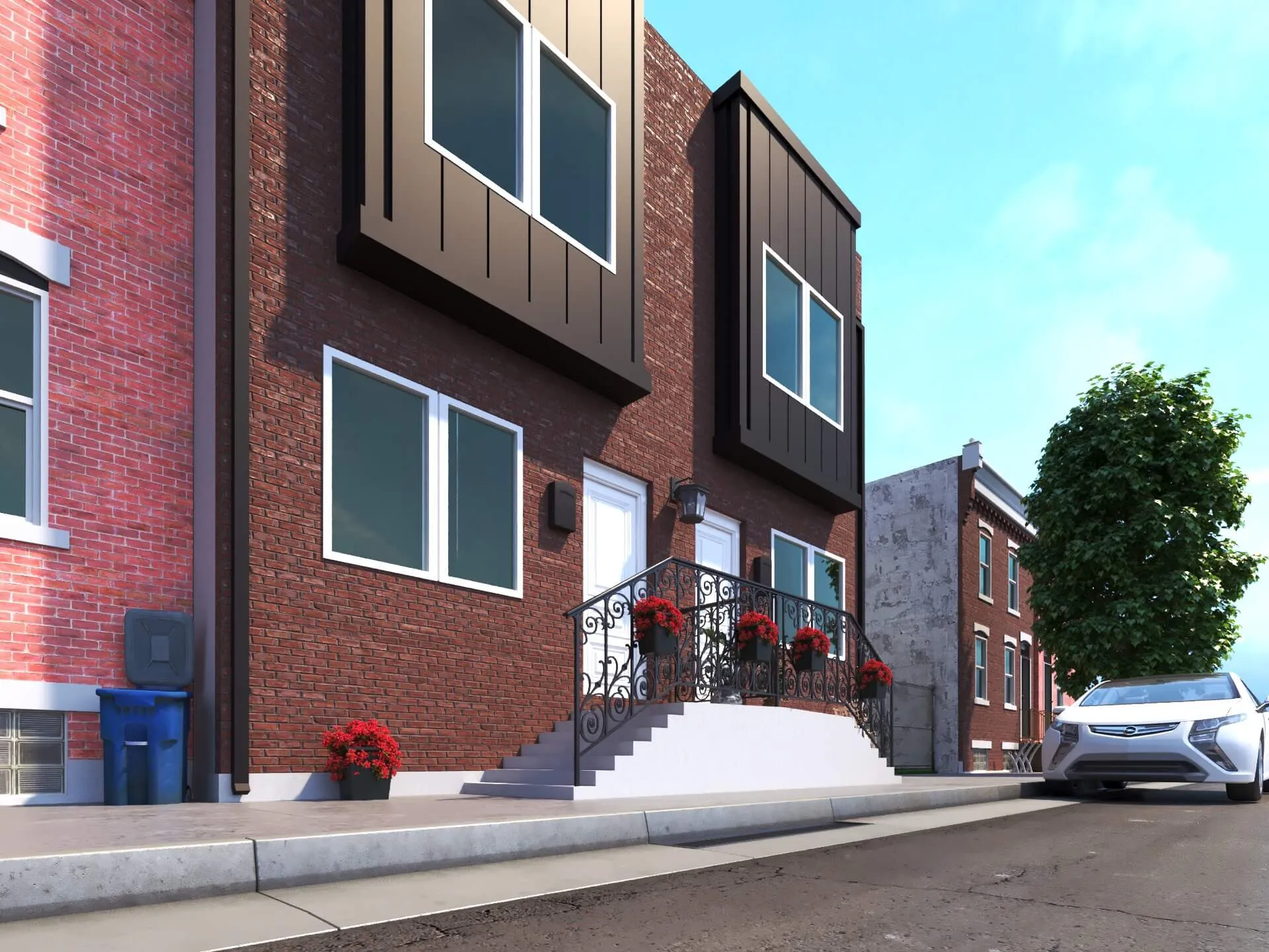 Stylish urban residence combining traditional brick textures with modern metal forms. Expansive roof deck and airy interiors maximize comfort in a compact footprint.