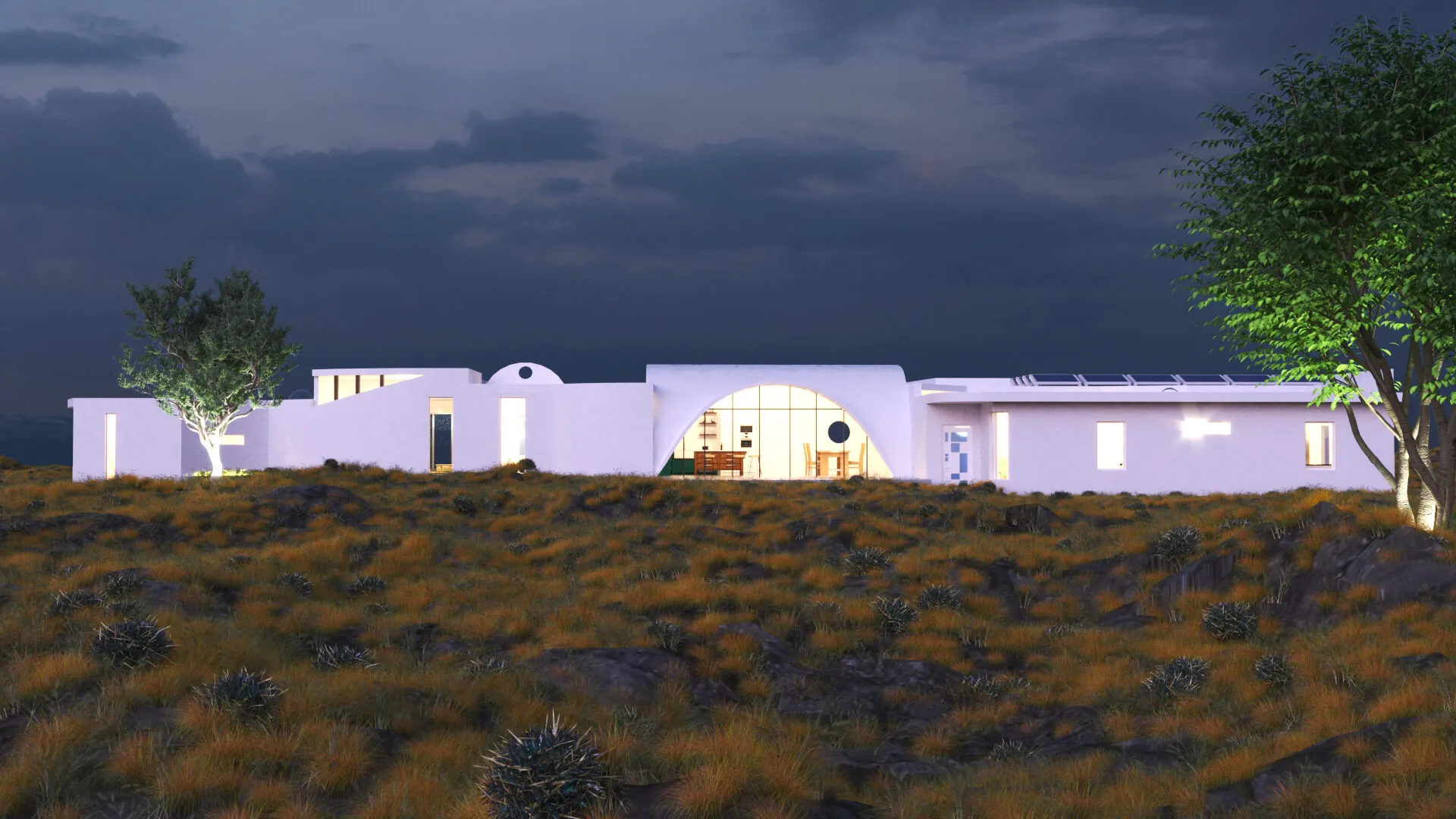 A modern single-story residence inspired by soft minimalism and natural landscapes. Clean white forms and curved transitions create a calm, sculptural aesthetic.