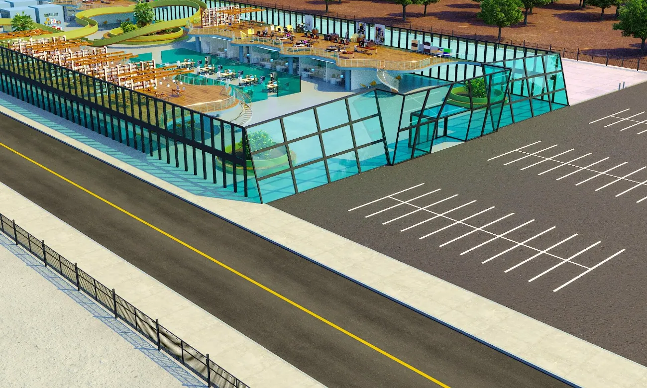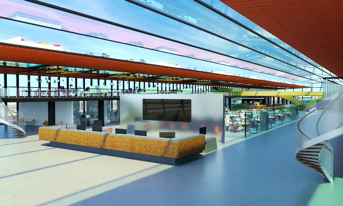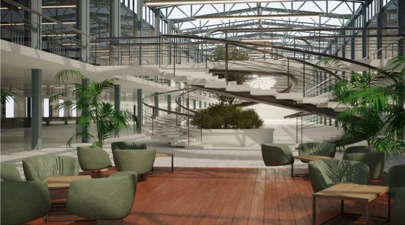 High-tech incubator complex designed for startups and innovation-focused teams. Bright, transparent facades and flexible interiors support dynamic work environments.