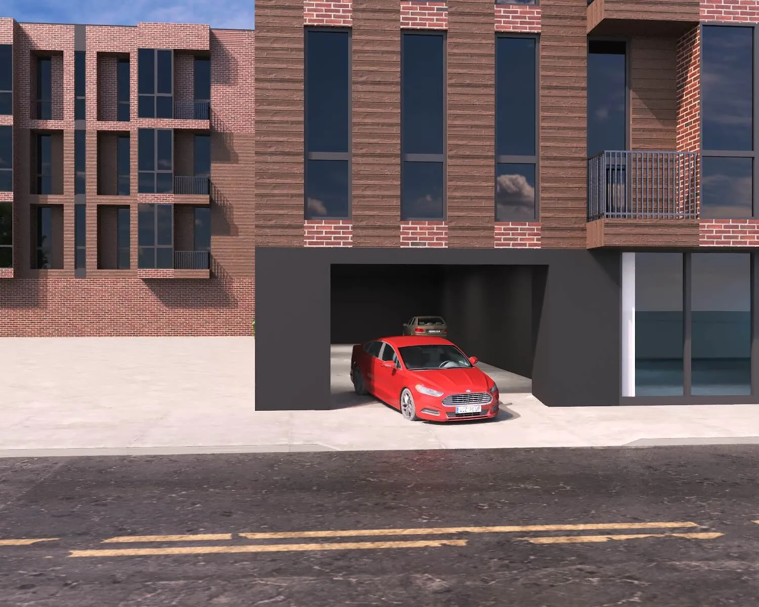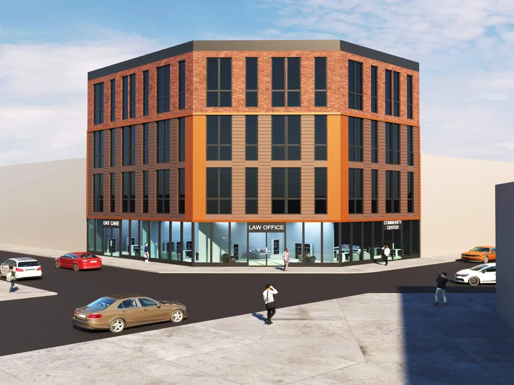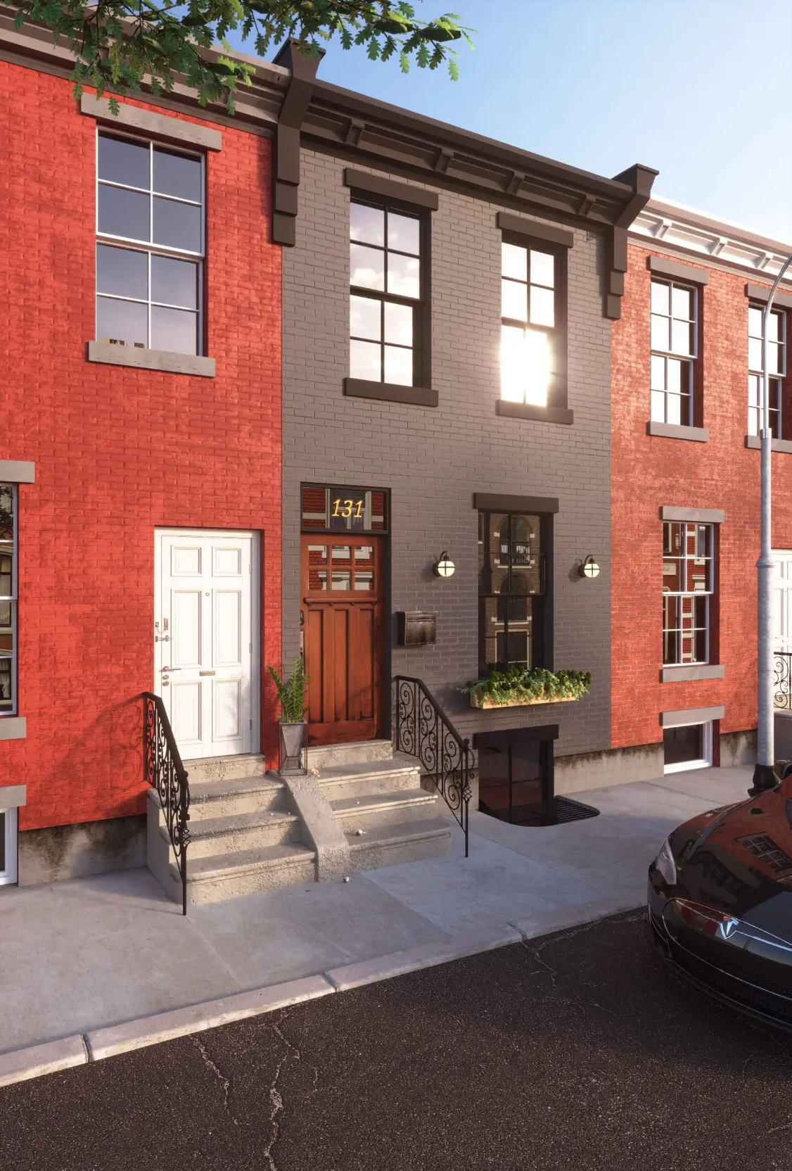 Colorful multi-unit townhouse concept blending functionality with bold design. Distinct facades create individuality, while shared architecture keeps harmony and rhythm.