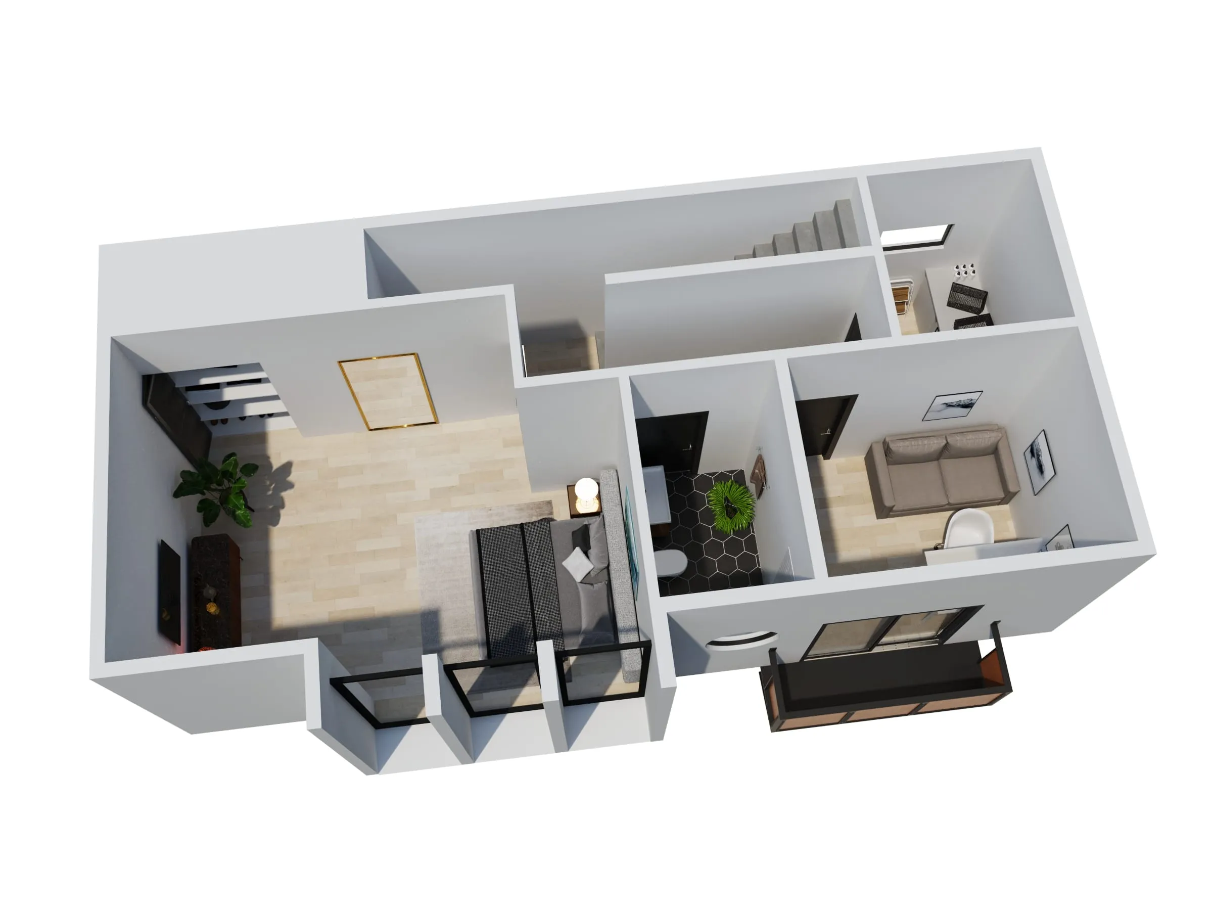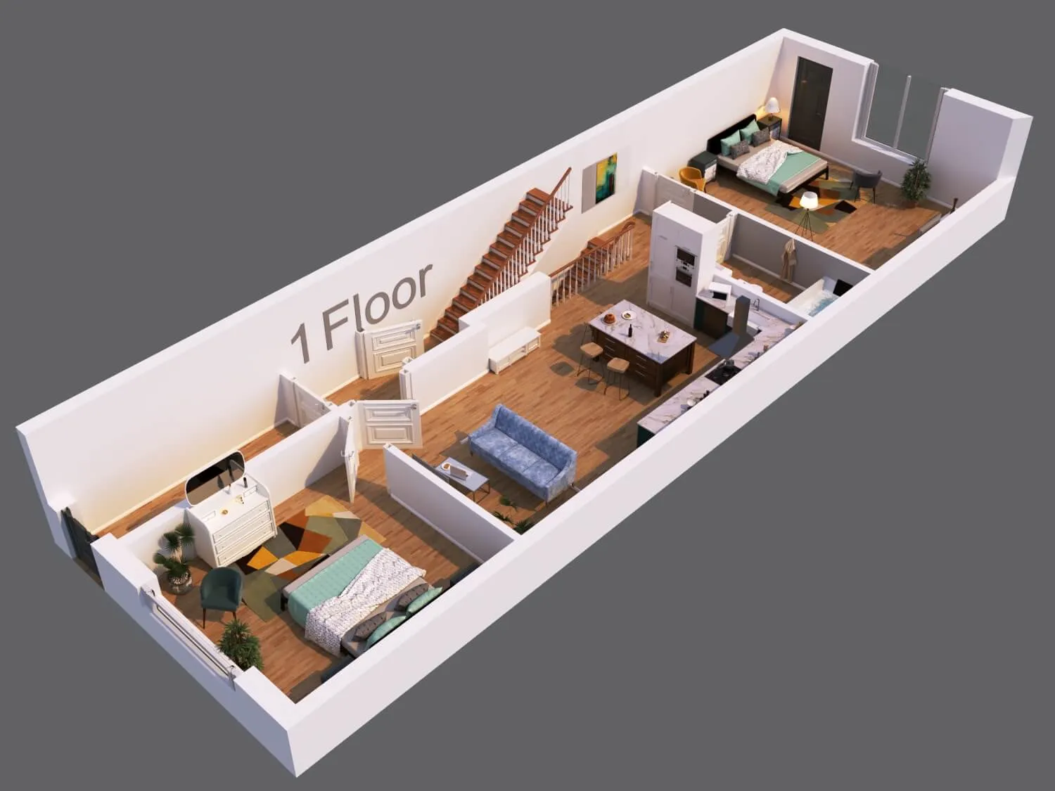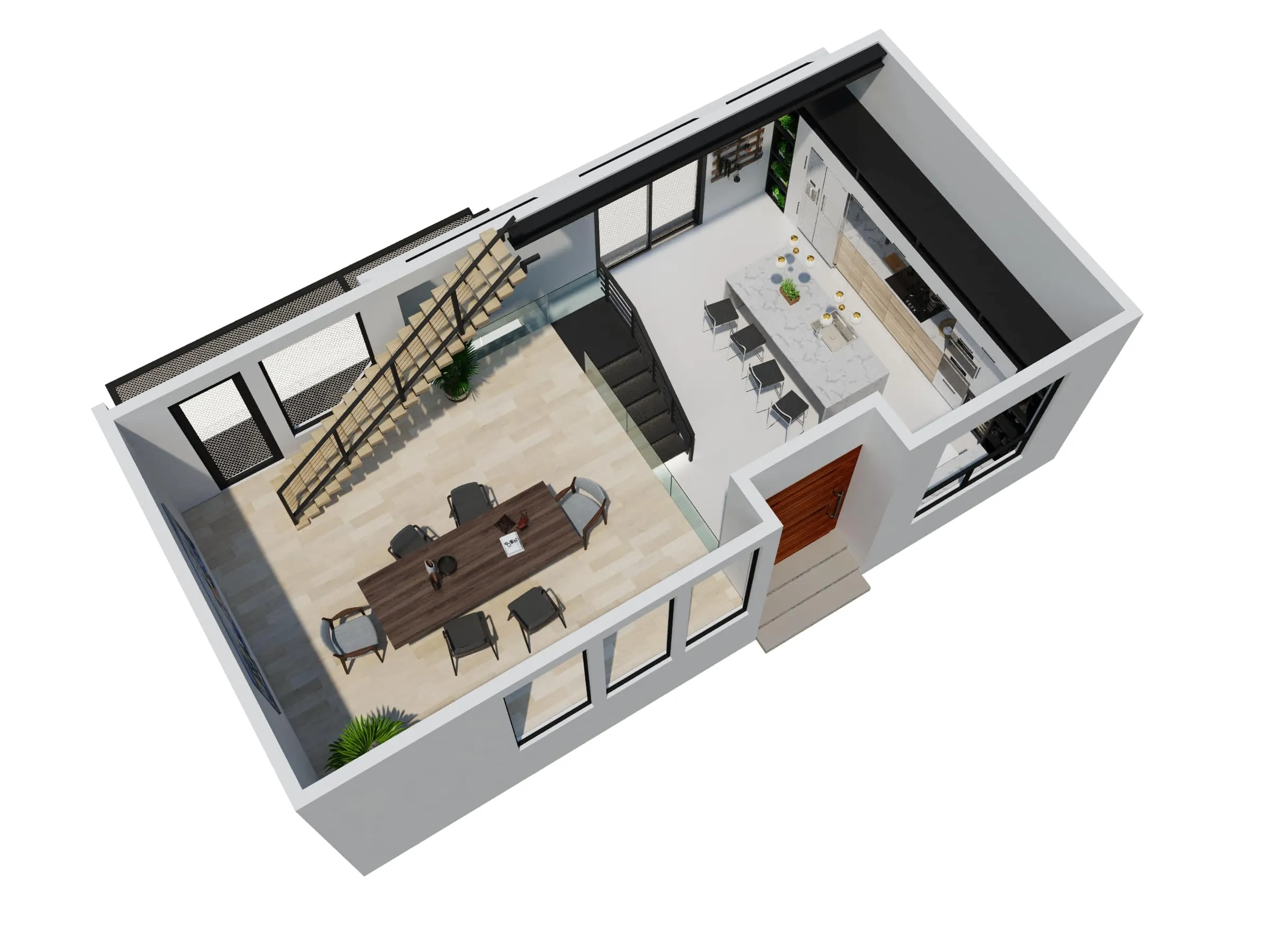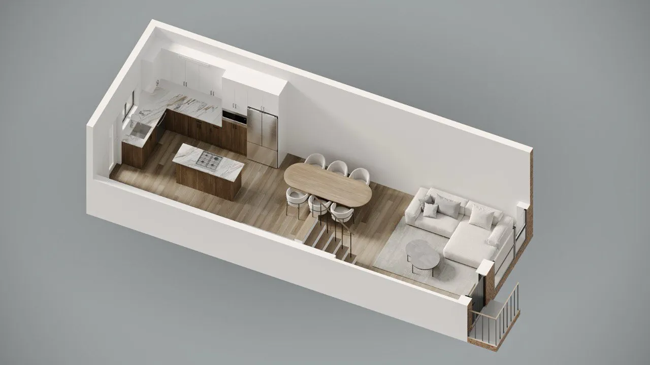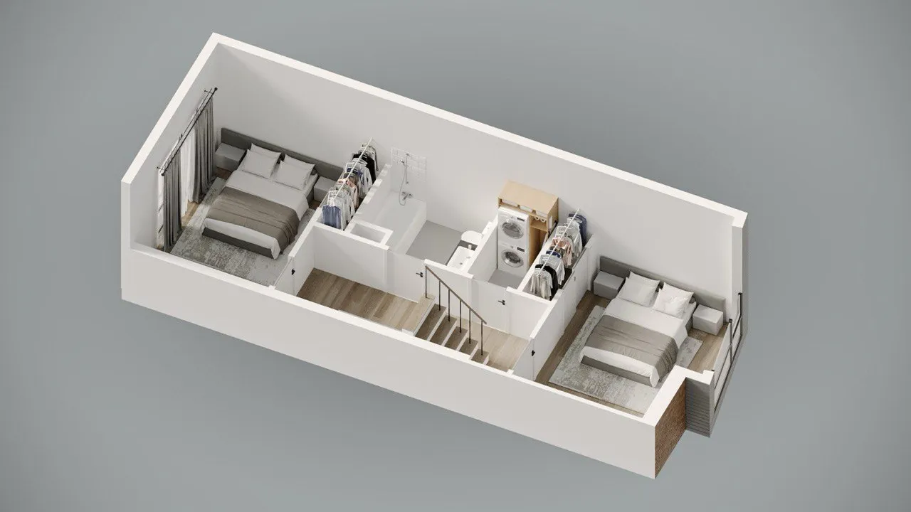 Modern townhouse concept with airy living zones and minimalistic aesthetics. Functional planning ensures comfort, privacy, and seamless flow between spaces.