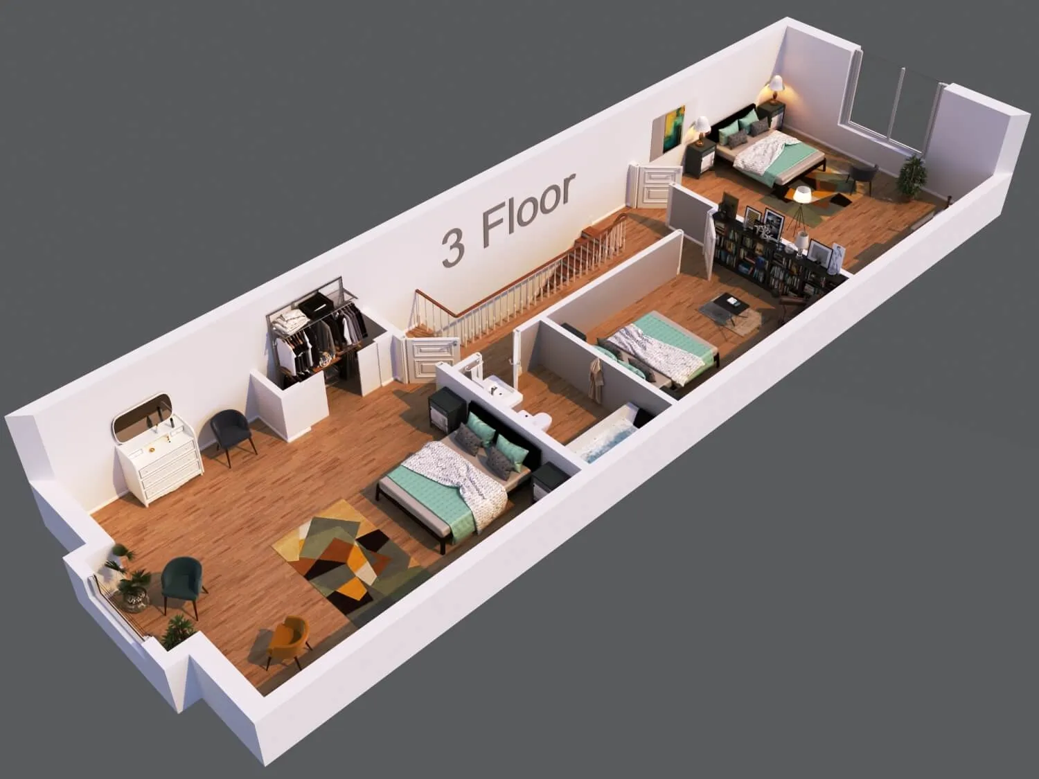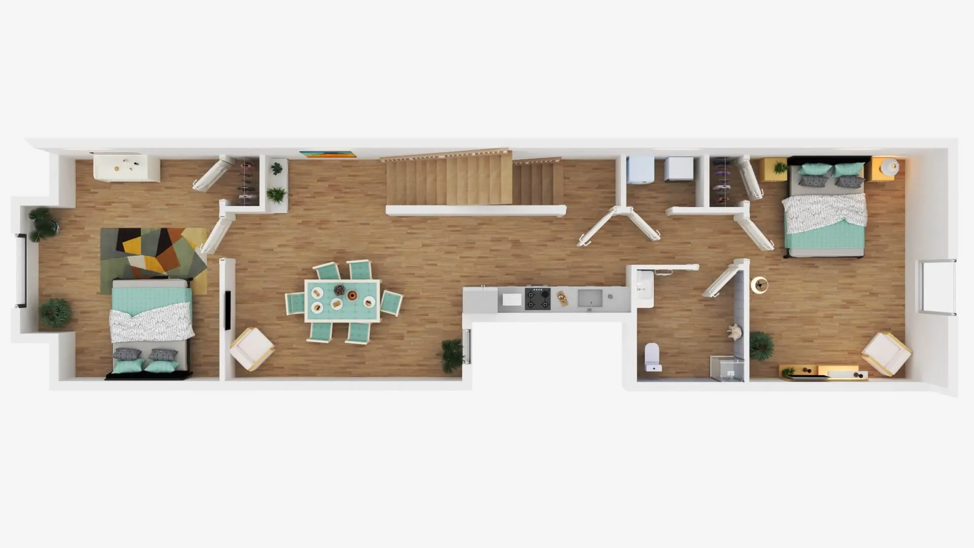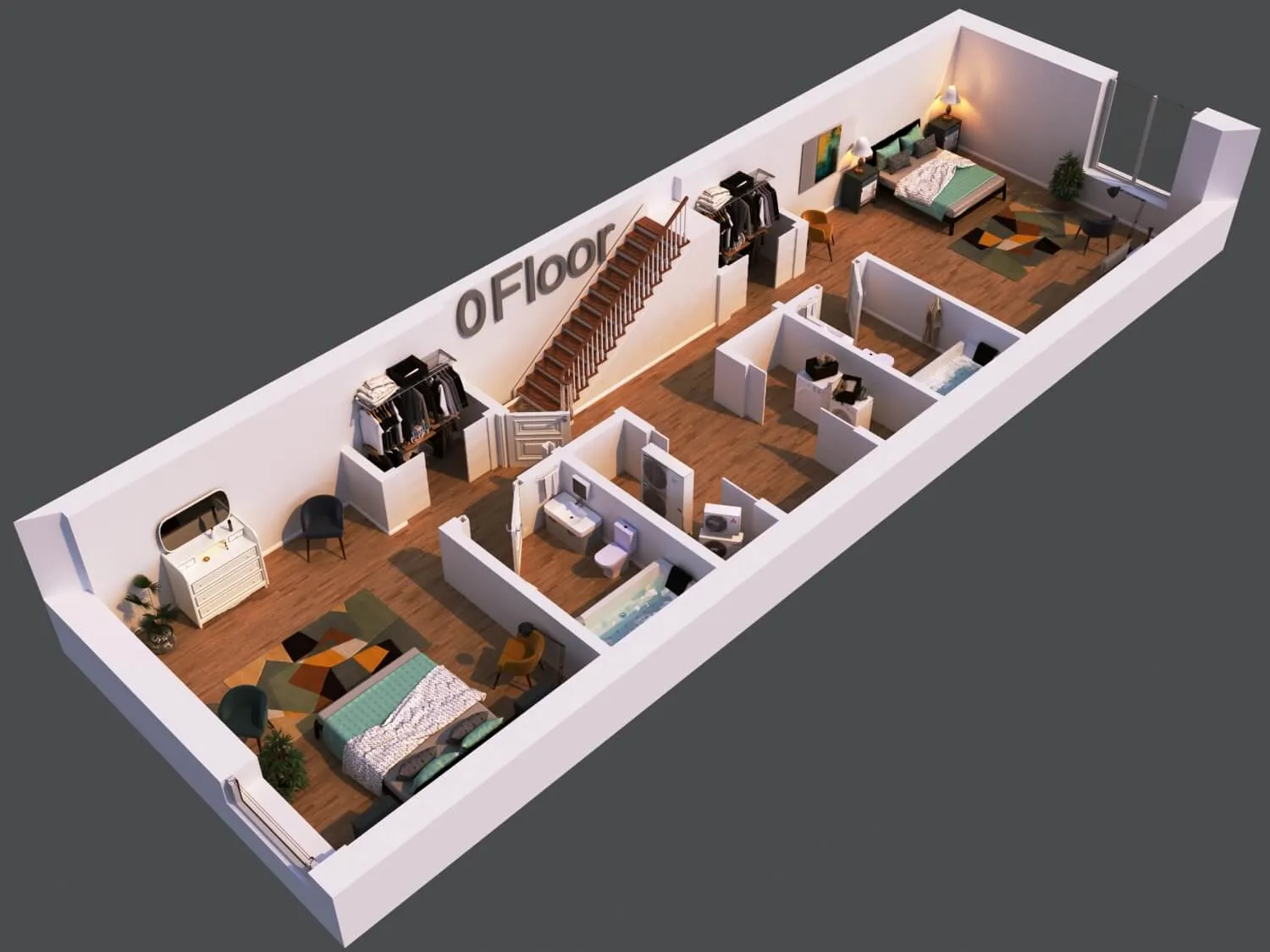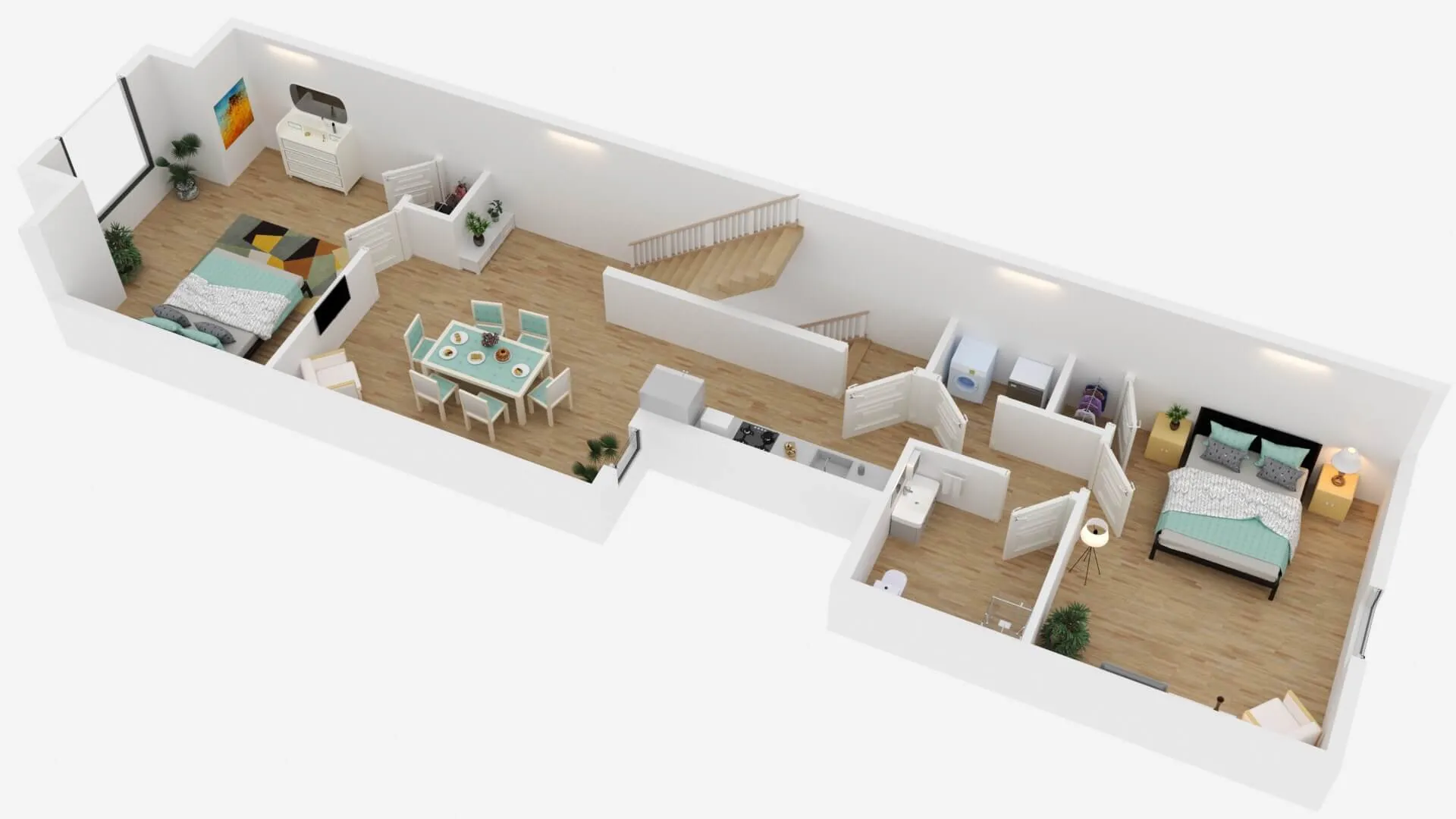 Modern townhouse concept with airy living zones and minimalistic aesthetics. Functional planning ensures comfort, privacy, and seamless flow between spaces.