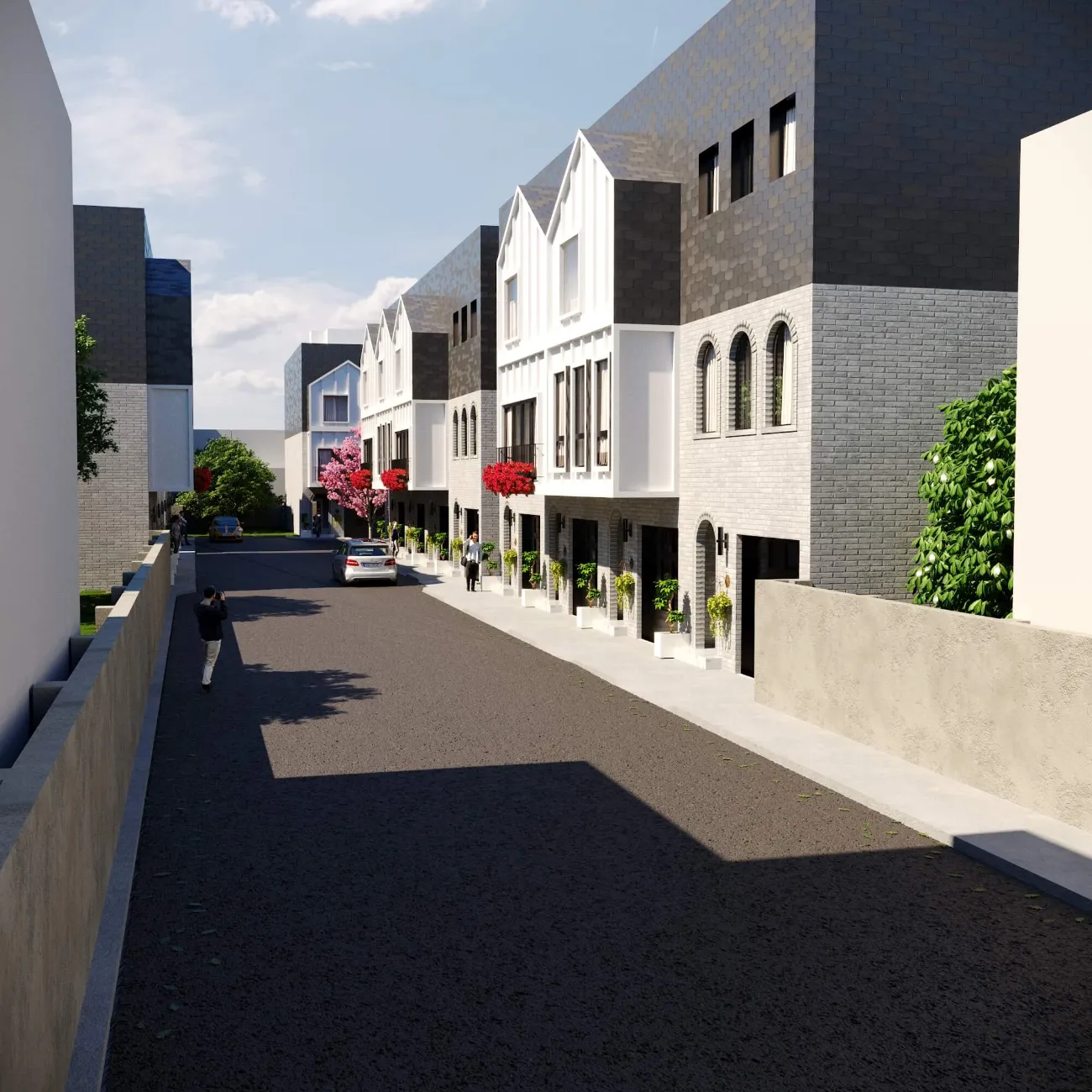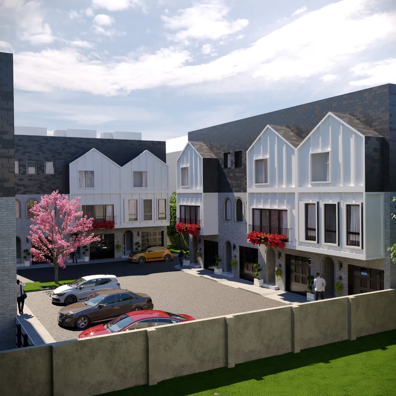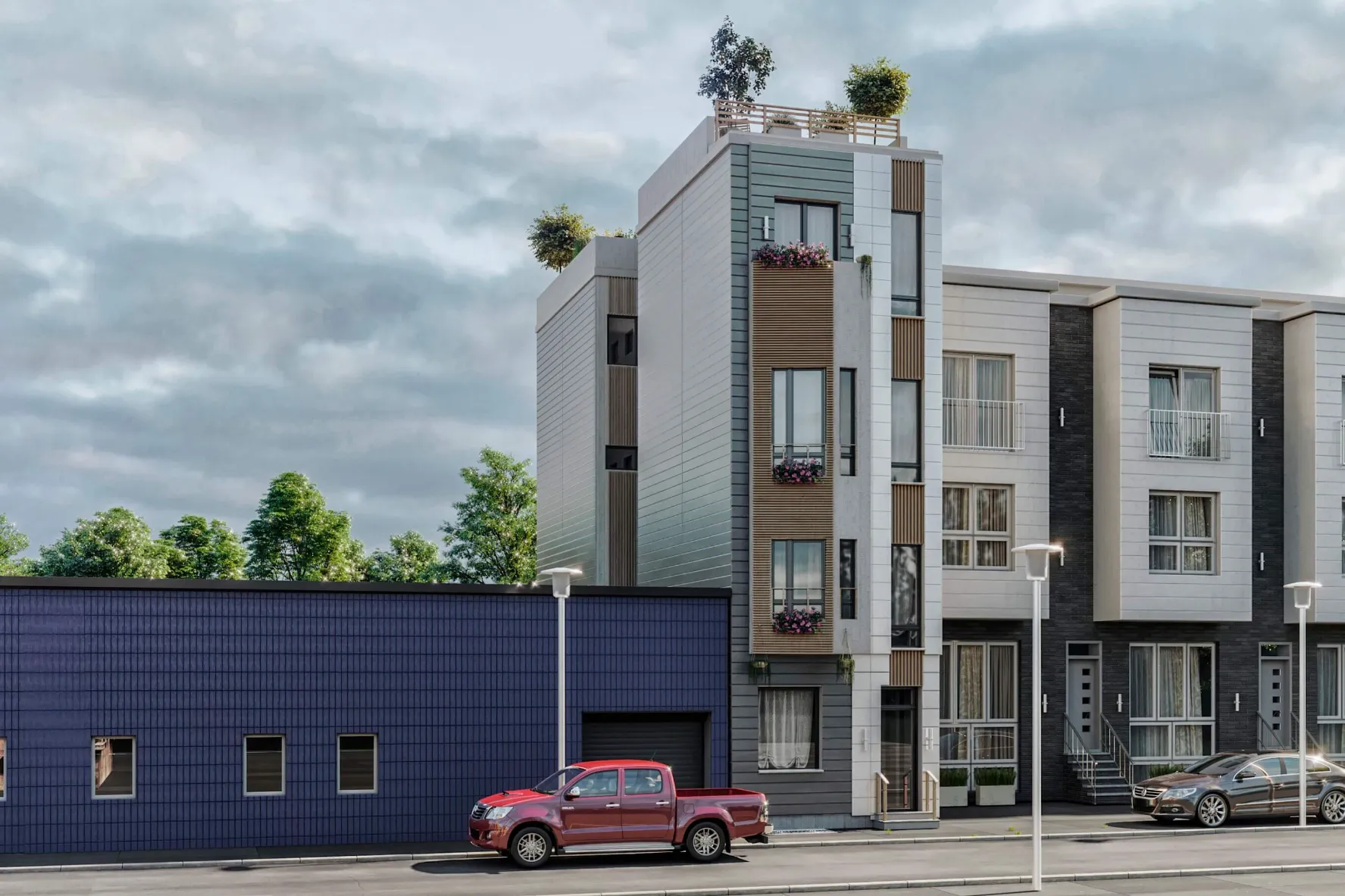 Modern multi-story residence combining urban minimalism and private comfort. Distinct facades, rooftop terraces, and functional layouts create a balanced lifestyle.