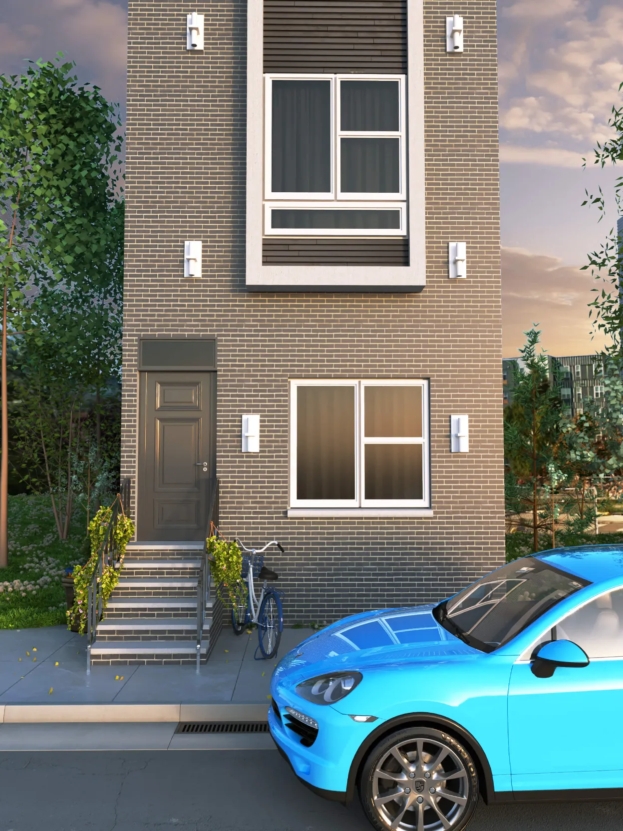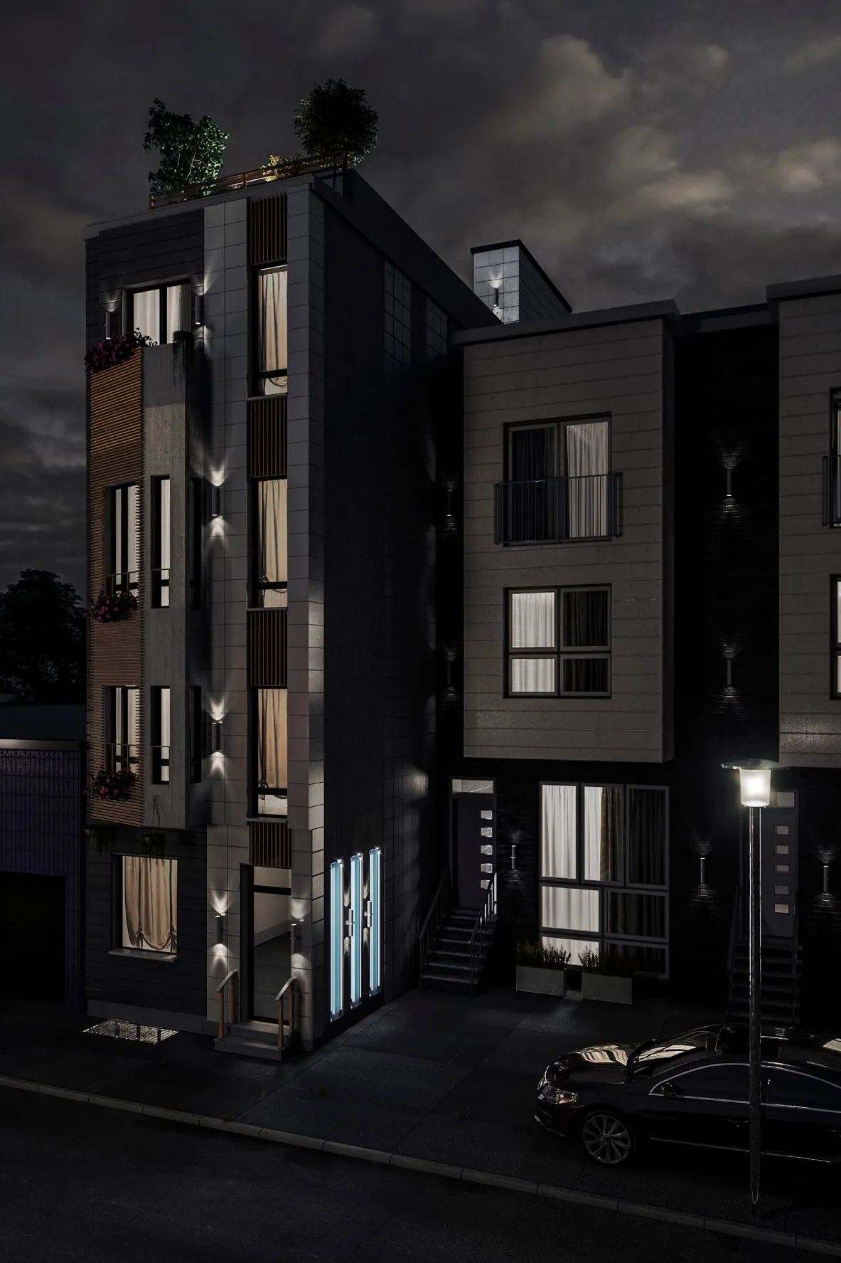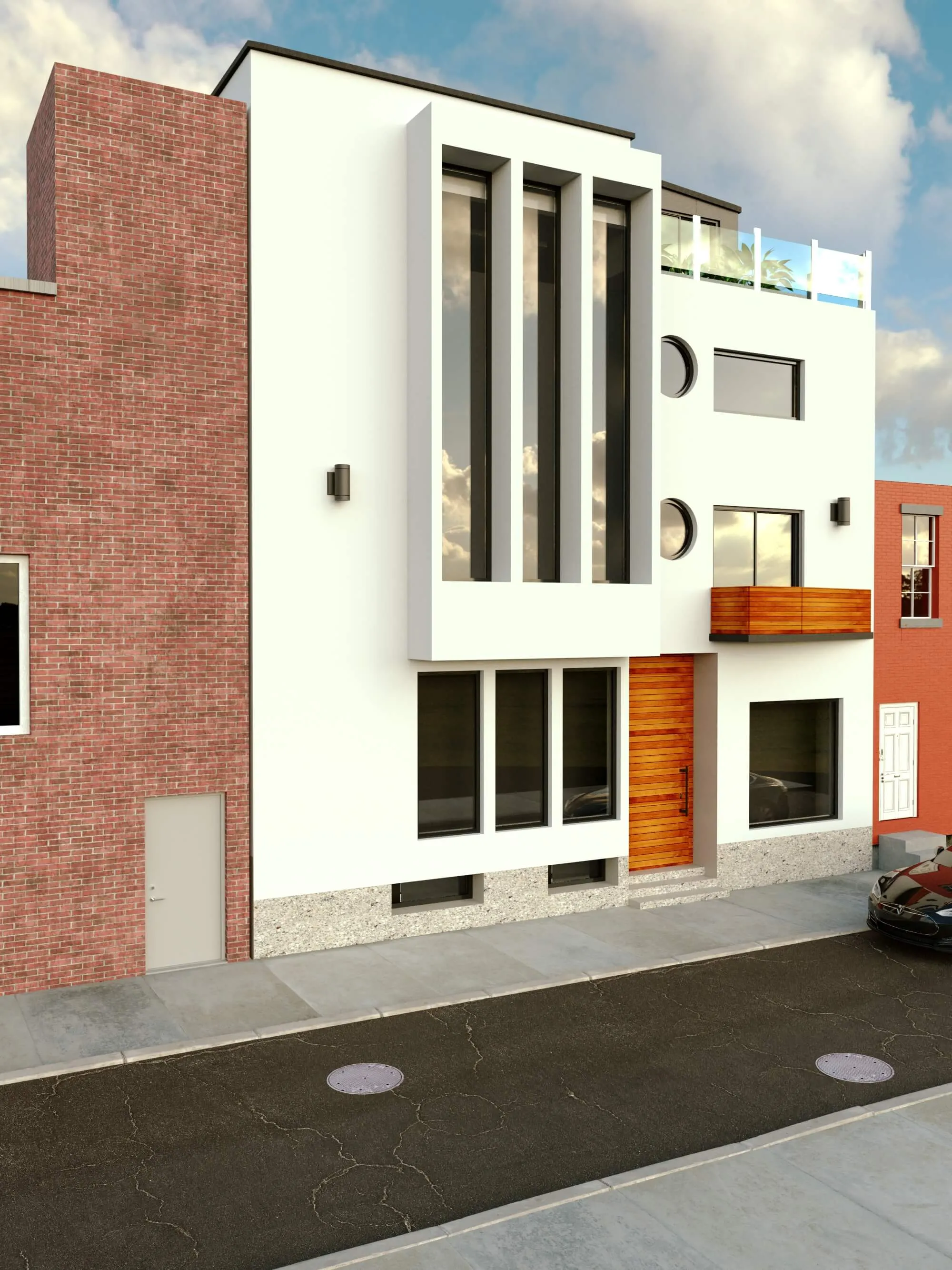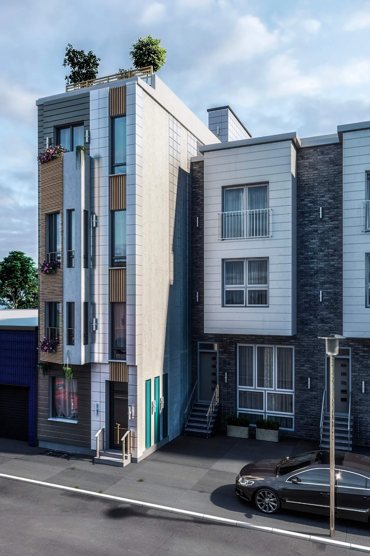 Modern multi-story residence combining urban minimalism and private comfort. Distinct facades, rooftop terraces, and functional layouts create a balanced lifestyle.